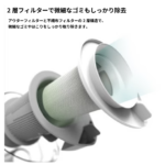 アウターフィルターと不織布フィルターの2層フィルター構造により、微細なゴミにも対応します。