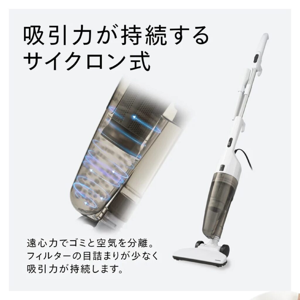 ■サイクロン方式を採用し、遠心力でゴミと空気を分離することで、フィルターの目詰まりを抑制。