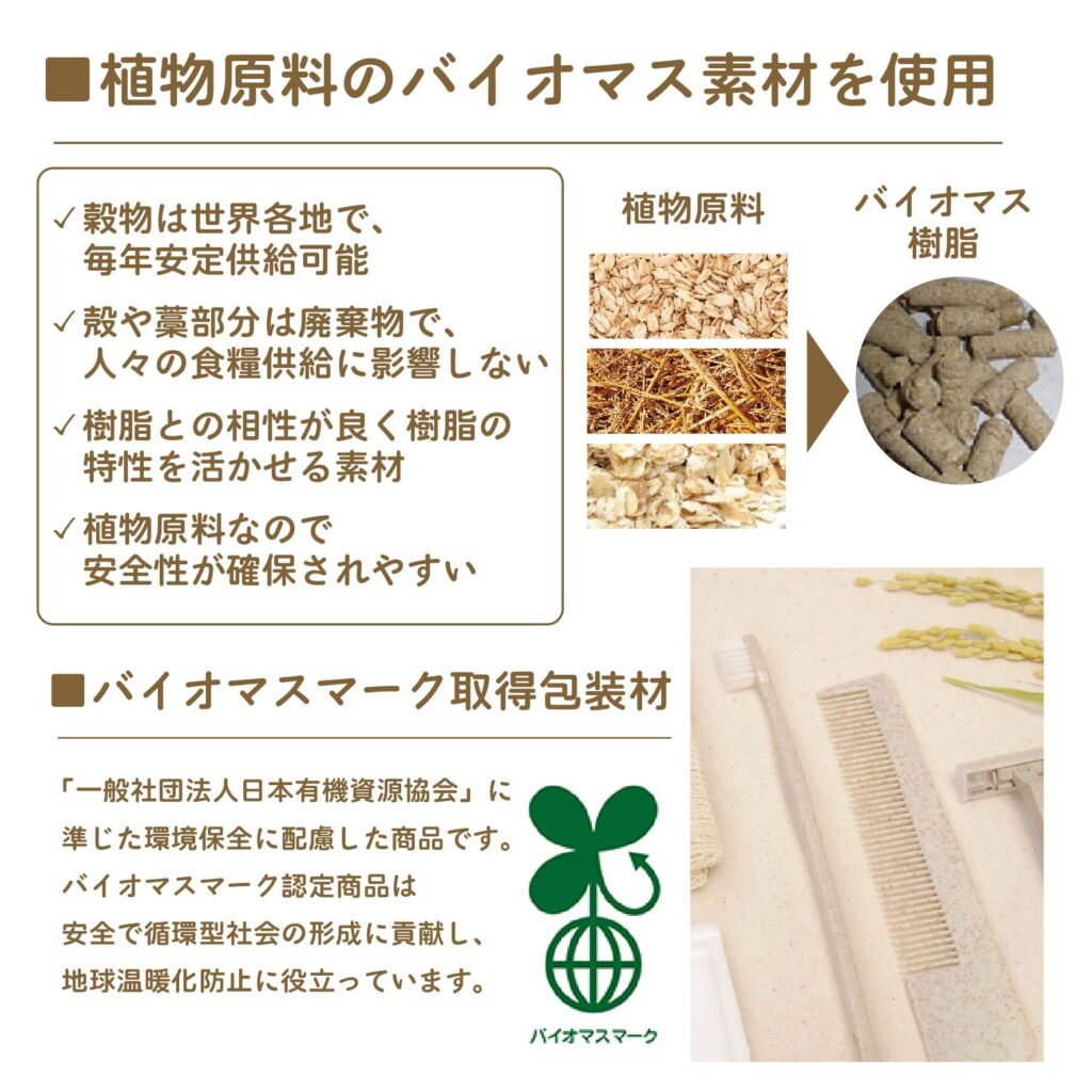 穀物を原料にした環境にやさしいエコ商品シリーズ。 人々の食糧供給に影響を及ぼさない安全で自然なバイオマス原料使用。
