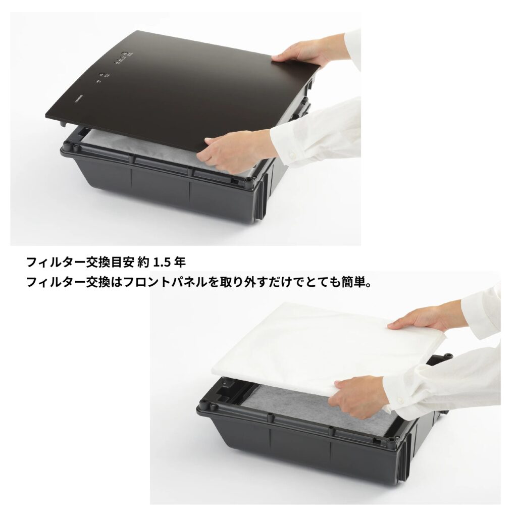 フィルター交換はフロントパネルを外すだけの簡単構造で、交換目安は約1.5年。