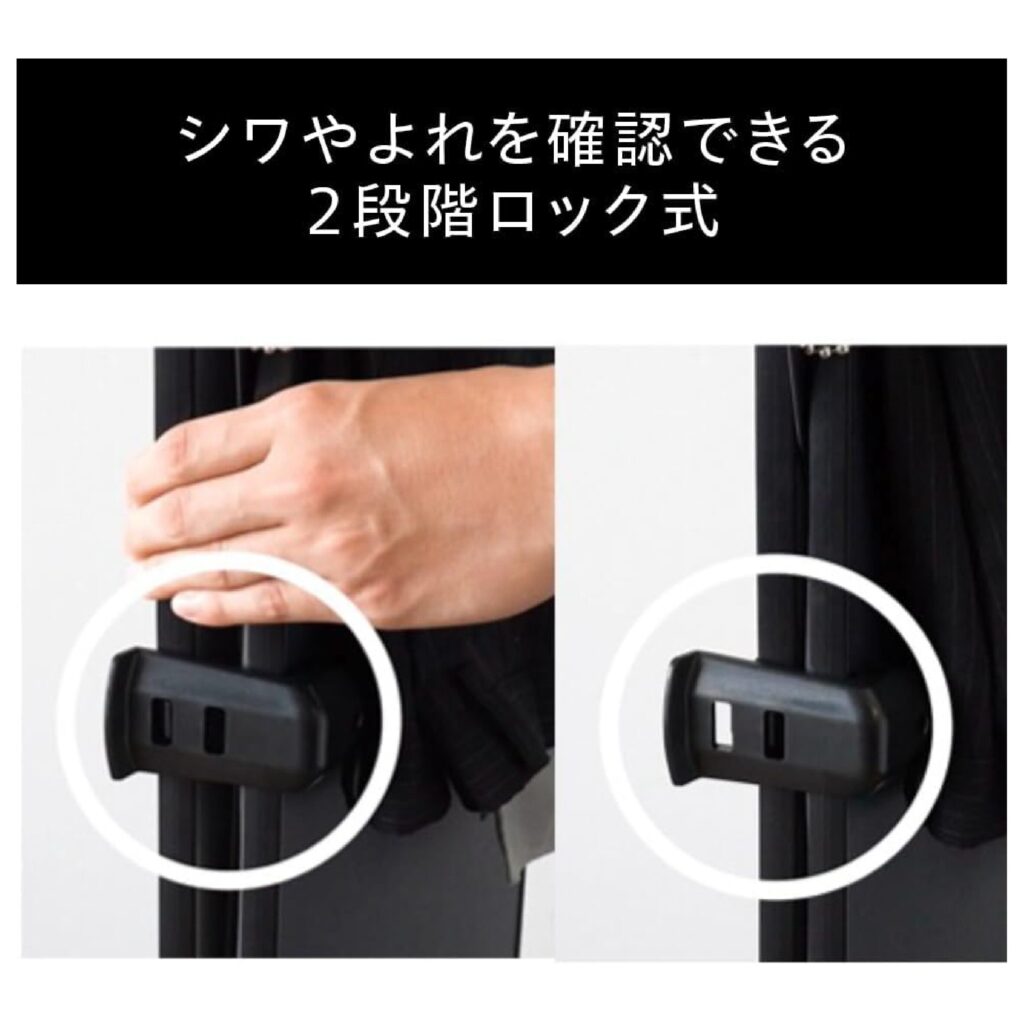 さらに、2段ロック構造を採用し、セット時にパンツのシワやヨレを確認しながら固定が可能。