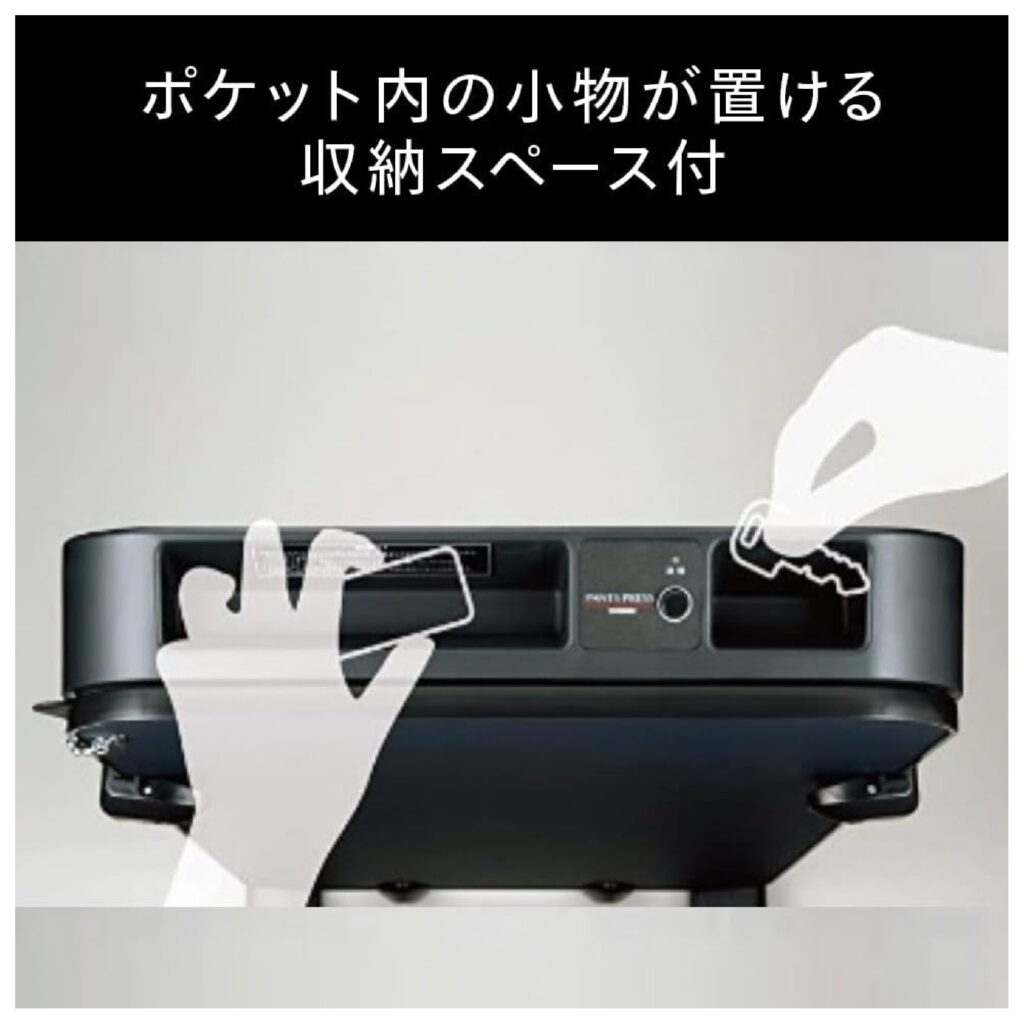 本体には、ポケット内の小物を置ける収納スペースを設備。