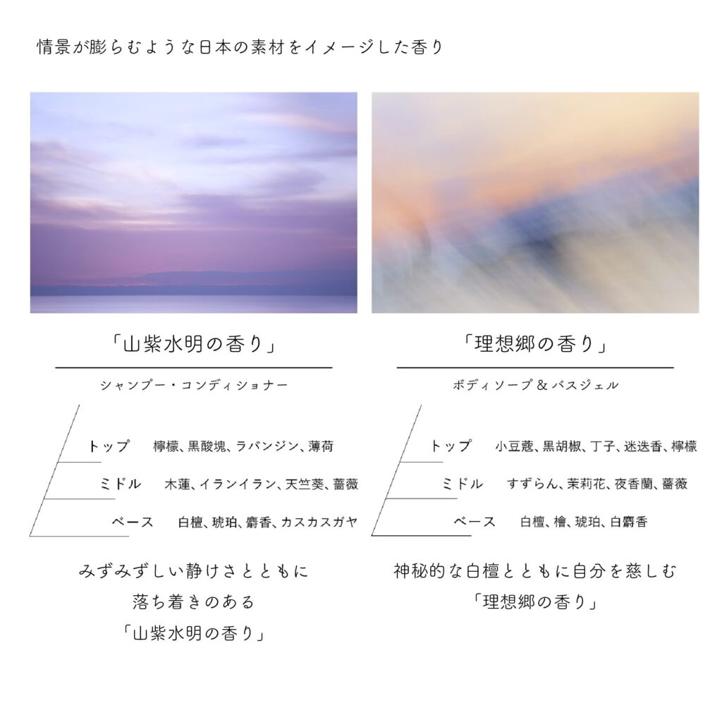 旅の情景を思い浮かべながら、頭皮をやさしくマッサージするように洗います。