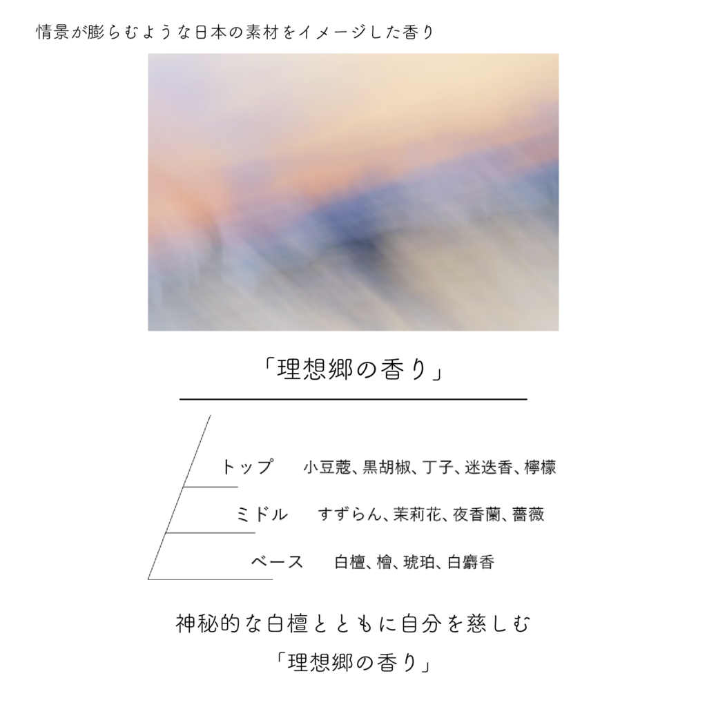 趣深い香りと、日本の素材を使った、自分の「理想郷」を想像し、