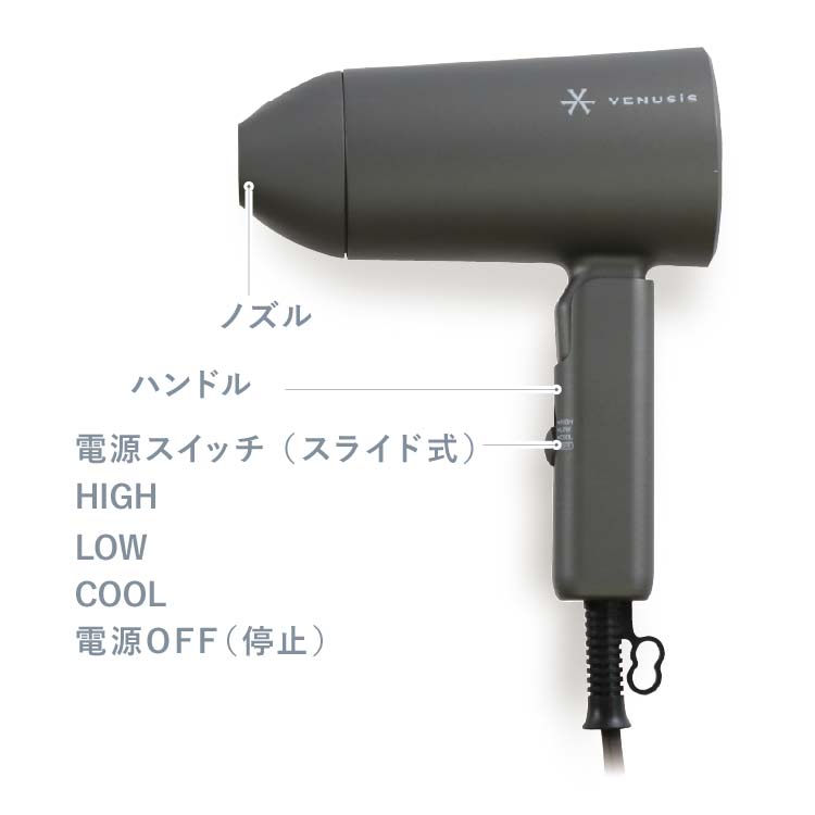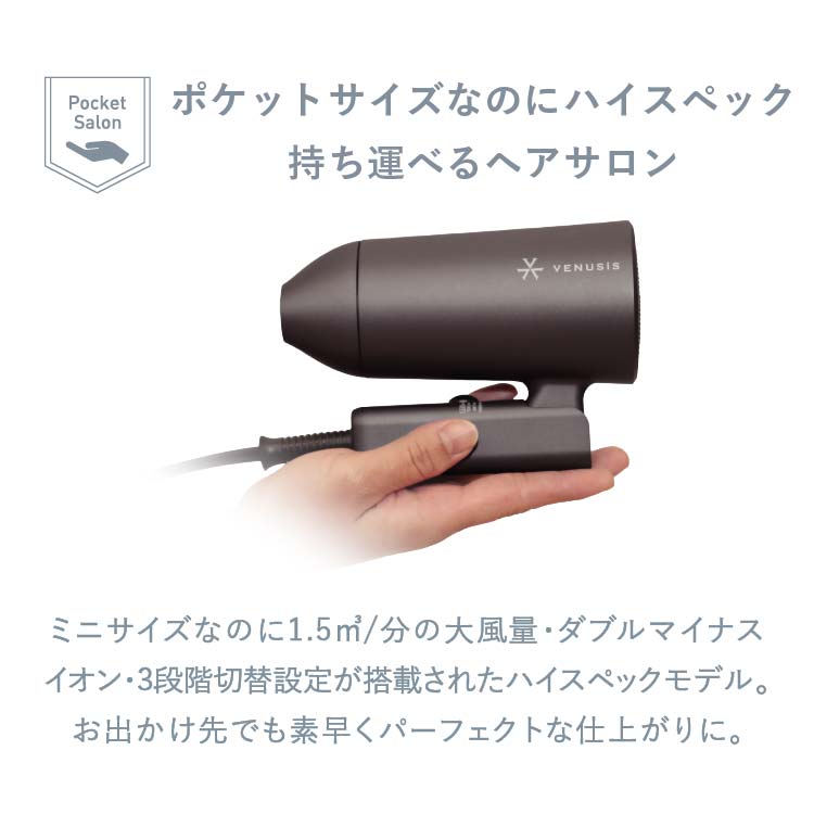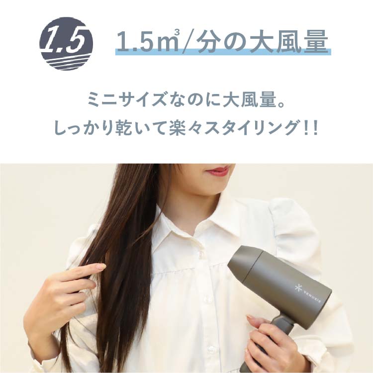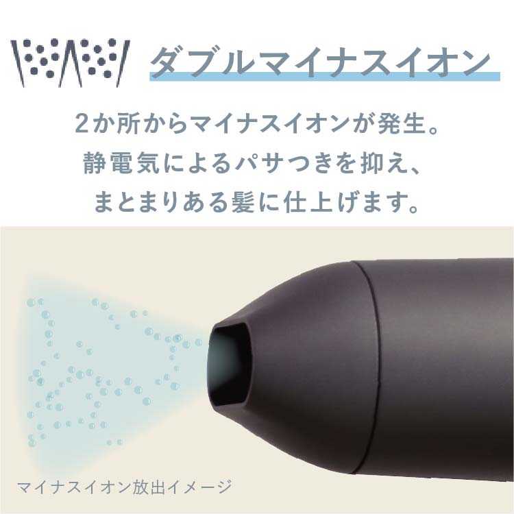 コンパクト設計でありながら、しっかり乾かす実力派。 マイナスイオン機能により、髪の広がりを抑え、まとまりのある仕上がりへ導きます。